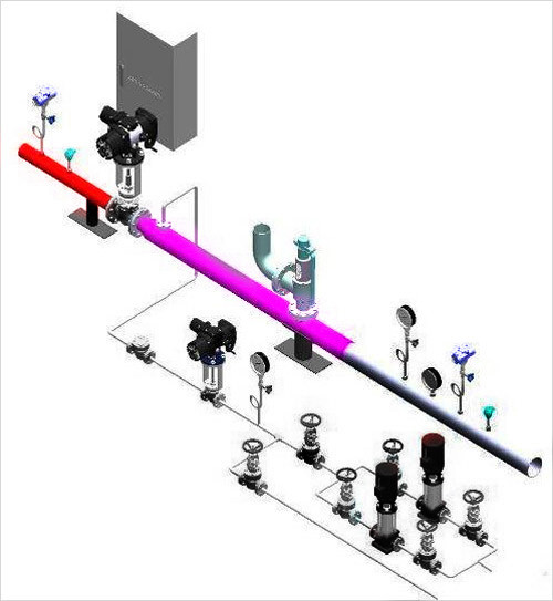 减温减压装置配相应的工业自动化仪表盘即热控柜,可对电站或工业锅炉以及热电厂等处输送来的一次新蒸压力P1、温度t1进行减温减压,使其二次蒸汽压力P2、温度t2达到生产工艺所需要的要求。WY系列减温减压装置及其热控柜广泛用于电站、轻纺、石化等行业。